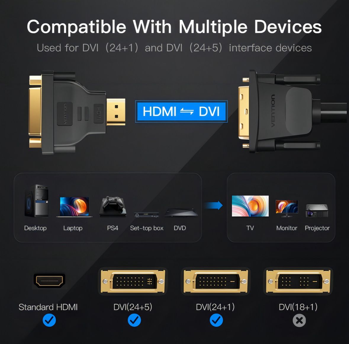 Permite conectar en el extremo de un cable DVI-D y convertirlo a HDMI