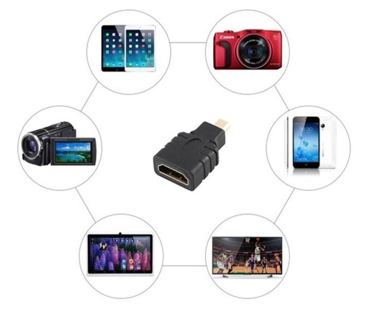 Este adaptador permite conectar dispositivos con salida Micro HDMI (como cámaras o consolas portátiles) a un televisor o monitor con entrada HDMI. Los conectores son de alta calidad, con chapado en oro y blindaje Mylar para una conexión estable.