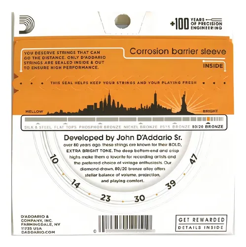 Con calibres .010-.047, esta cuerda proporciona una tensión media, ideal para guitarras. Su material de acero garantiza un sonido brillante y una respuesta excelente, lo que te permite explorar todo el potencial de tu instrumento.