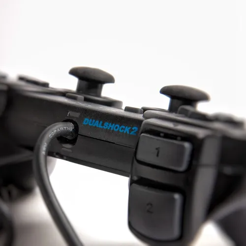 Control analógico original para PlayStation 2, con vibración, diseño ergonómico y total compatibilidad para juegos que requieren movimientos precisos tanto en modo digital como analógico.