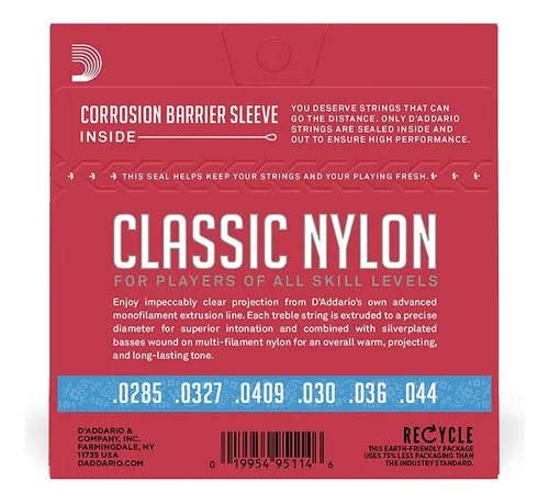 Encordado entry-level para guitarras clásicas de D'Addario, conocido por su equilibrio óptimo de calidez y proyección